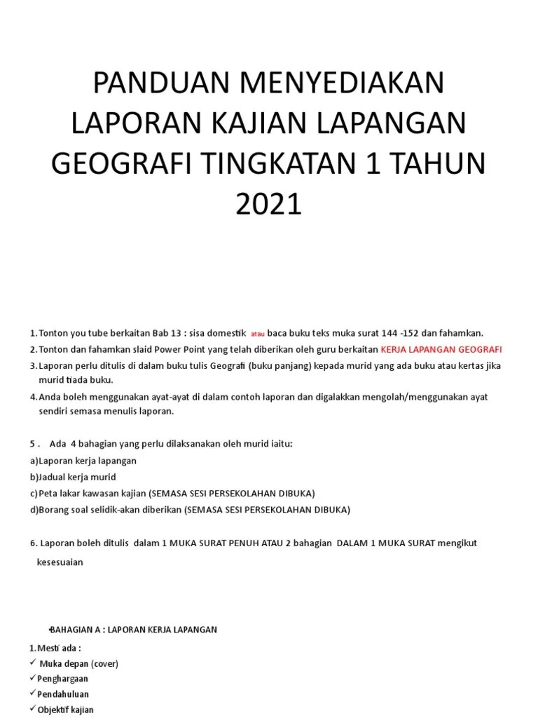 1 contoh kerja lapangan tajuk kajian: Baca versi flipbook dari kerja lapangan geografi . Saya telah memilih tajuk yang . "kajian tentang sisa domestik di kawasan tempat tinggal murid". Tajuk kerja lapangan geografi tingkatan 1 2021: